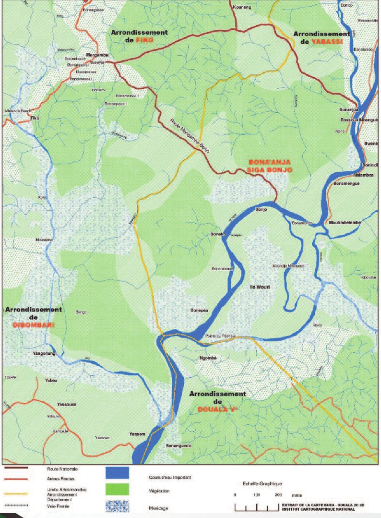 • Par voie routière (itinéraire conseillé en bleu) : Bonabéri-Békoko-Souza-Carrefour Kaké – Miang – Mangamba – Bona’Anja – Siga Bonjo (50 Km environ)